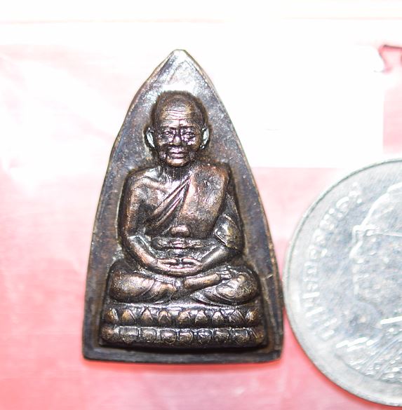 พระกลีบบัวหลวงปู่ทวด วัดช้างให้ ร.ศ.200 ปี 2525 พิมพ์หน้าหนุ่ม เนื้อทองเหลืองรมดำ เคาะเดียวแดง องค์ที่ 1 |