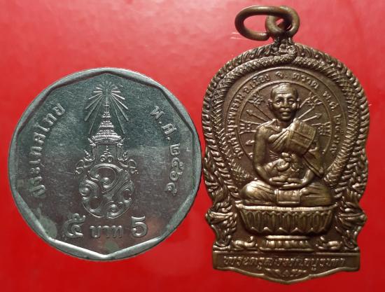 เหรียญนั่งพานหลวงปู่บัว วัดศรีบูรพาราม ตราด ปี 39 เนื้อทองแดง,ตอกโค๊ต เคาะเดียวแดง