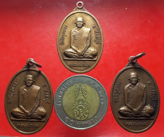 เหรียญหลวงพ่อแพ ธ.กรุงเทพจัดสร้าง ปี 2521 เนื้อทองแดง 3 เหรียญ เคาะเดียวแดง