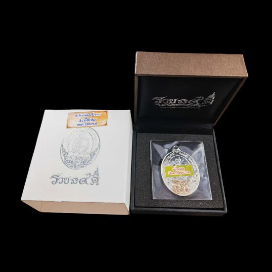 พระอาจารย์ต้อม วัดท่าสะแบง จ.ร้อยเอ็ด รุ่นรวยนะ9ดี พิมพ์แกะสด รายการเซอร์ไพรส์ เนื้อเงินฝังตะกรุดนาค ตอกโค๊ต 23 จัดสร้างแค่ 39 องค์ หายาก สร้างน้อยมาก พร้อมกล่องอย่างดี จัดสร้างโดย ป๋าต้อย เมืองนนท์