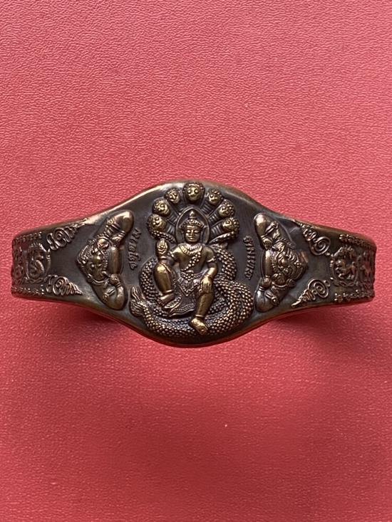 เคาะเดียวแดง กำไล องค์พ่อจตุคาม-รามเทพ รุ่นมงคลจักรวาล เนื้อสำริด เลข 579 |