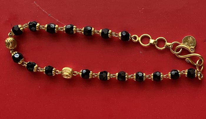 เคาะเดียว...ยอมขาดทุน..สร้อยข้อมือ/ข้อเท้าเด็กเล็ก ทอง 91.5% ประดับนิล งานจิวเวอลี่ ความยาวประมาณ 14 เซนติเมตร
