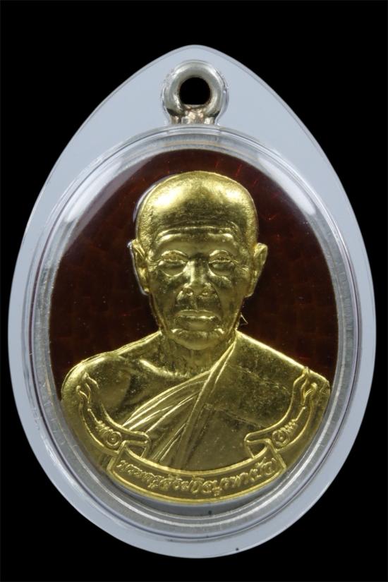 เหรียญสภาพสวย หลวงปู่บัว วัดศรีบุรพาราม รุ่นสร้างบารมี พิมพ์ห่วงเชื่อม เนื้อเงินลงยาสีแดงหน้าทองคำ ปี 54