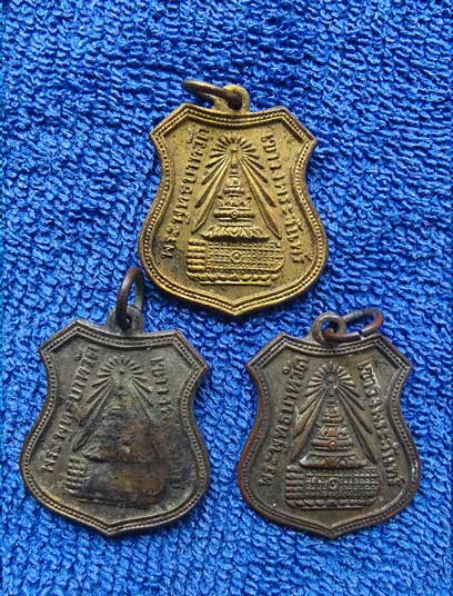 150.- เหรียญพระพุทธบาทวัดเขาวงพระจันทร์ หลังเจ้าคณะจังหวัดลพบุรี ปี 2504 จำนวน 3 เหรียญ