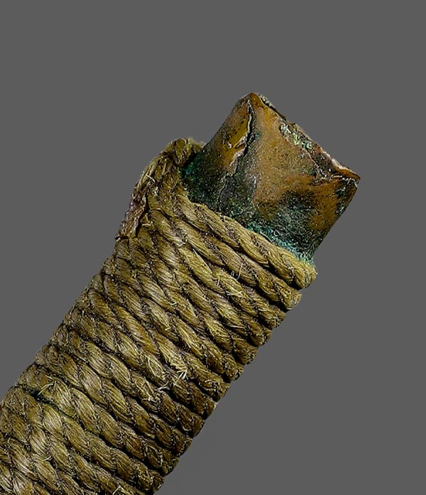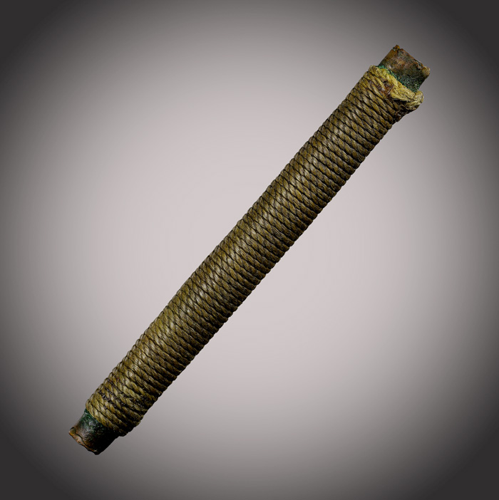 ตะกรุด เนื้อทองแดง(ไม่ทราบที่สร้าง)พันด้วยเชือก สภาพเก่ามีอายุ ยาว 2.5 นิ้ว อ้วน 7 มิลลิเมตร