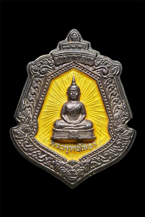 เหรียญประจำตระกูล พระพุทธโสธร วัดโสธรฯ ปี 2547 เนื้อเงินลงยาสีเหลือง พร้อมซองเดิม