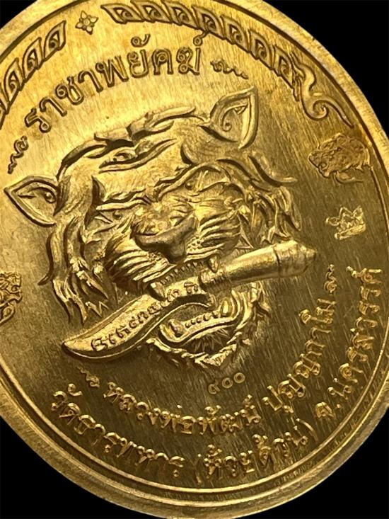 เหรียญราชาพยัคฆ์ หลวงพ่อพัฒน์ วัดห้วยด้วน จ.นครสวรรค์ปี 2564 (เนื้อทองทิพย์ ลงยา) ตอกโค้ต หมายเลข 3หลักสวยๆ ๙๐๐