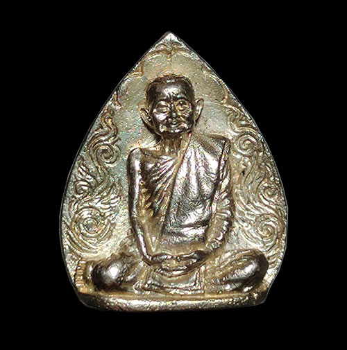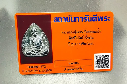 เหรียญหล่อรูปเหมือน พิมพ์ใบโพธิ์ ปี 2517 หลวงปู่แหวน สุจิณฺโณ เนื้อเงิน พร้อมบัตรG