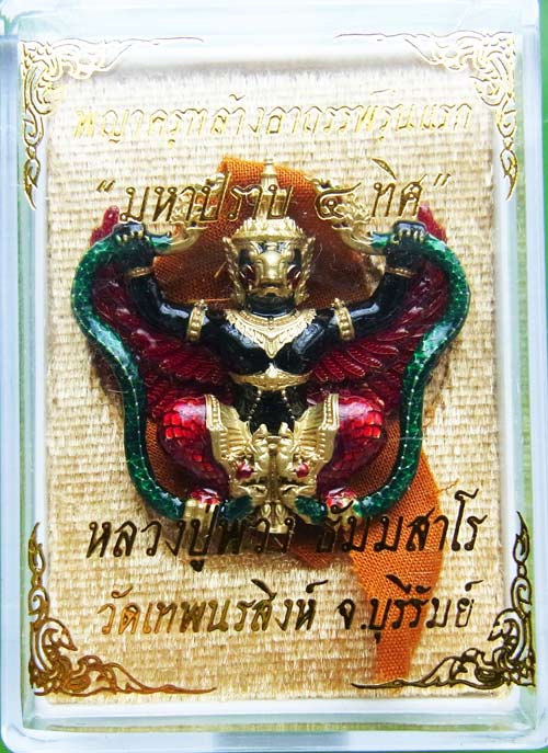 พญาครุฑ ล้างอาถรรพ์ รุ่นแรก " มหาปราบ ๔ ทิศ " หลวงปู่พวง วัดเทพนรสิงห์ ปี2565 เนื้อทองชนวนลงยา กายดำ ปีกแดง พญานาคเขียว (แยกจากชุดกรรมการ) ปลุกเสก 3 วาระ พระมหาสุรศักดิ์ , หลวงพ่อทอง , หลวงปู่พวง |