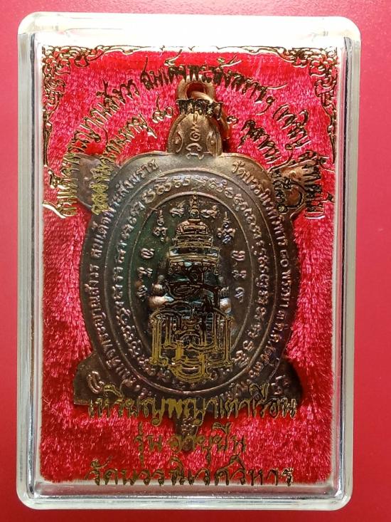 พญาเต่าเรือน รุ่นอายุยืน ฉลองพระชนมายุ ๘๐ พรรษา ๓ ตุลาคม ๒๕๓๖ เนื้อทองแดงผสมชนวนพระสังกัจจายน์ญส.ปี ๒๕๓๐ (พระสังกัจจายน์ญส.รุ่นแรก ปี ๒๕๓๐ เป็นรุ่นสำคัญมีส่วนผสมของชนวนพระกริ่งบวรรังสี ๒๕๒๘ และชนวนพระกริ่งปวเรศ ๒๕๓๐ ล้วน ๆ โดยไม่มีชนวนพระรุ่นอื่นเจือปนเลย) พิธีพุทธาภิเษก-ชัยมังคลาภิเษก ณ พระอุโบสถวัดบวรนิเวศวิหาร หลวงปู่หลิว ปณฺณโก วัดไร่แตงทอง เทพเจ้าแห่งพญาเต่าเรือน ร่วมปลุกเสกในพิธี หลวงพ่อเปิ่น หลวงพ่อแย้ม วัดสามง่าม หลวงพ่อพูล วัดไผ่ล้อม หลวงพ่อไสว วัดปรีดาราม หลวงพ่อแช่ม วัดดอนยายหอม หลวงพ่อยิด วัดหนองจอก หลวงพ่อสง่า วัดบ้านหม้อ ฯลฯ ร่วมพิธี เคาะเดียว พระมาพร้อมกล่องเดิม