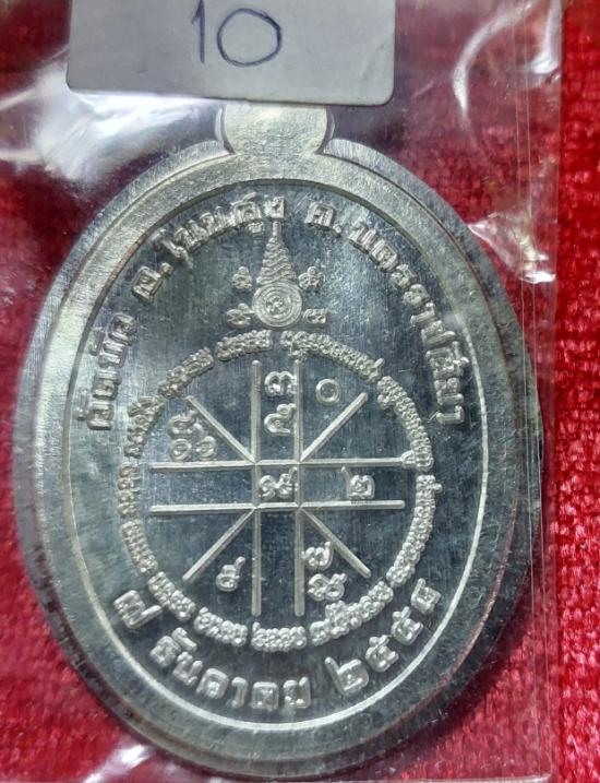 เหรียญเจริญพรล่าง หลวงปู่อินทร์ นนฺทโก เนื้อเงินไม่ตัดปีก ๙ รอบ ฝังเพชรแท้100% เลข10 วัดบัว อ.โนนสูง ปี2558