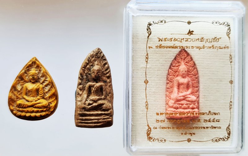 << วัดใจ >> พระผงใบโพธิ์ รุ่นแรก พระอาจารย์เปลี่ยน + พระรอดหลัง อ ครูบาอินทร + พระรอดหลวงหริภุญชัย รุ่นปลียอดฉัตรพระธาตุเจ้าหริภุญชัย |