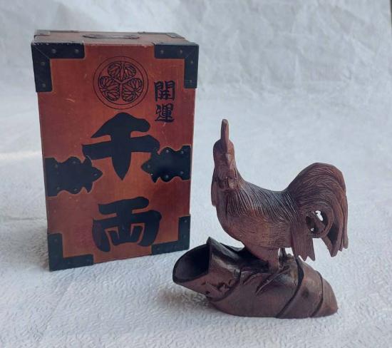 ***วัดใจ****กล่องไม้วินเทจ กับไก่แกะสลักด้วยไม้พยุง ฝีมือของญี่ปุ่น |