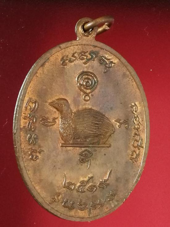 เหรียญหลังยันต์นกคุ้ม หลวงพ่อทรัพย์ วัดอินทราราม (ตลุก) อ.สรรพยา จ.ชัยนาท ปี ๒๕๑๙ เนื้อทองแดง |