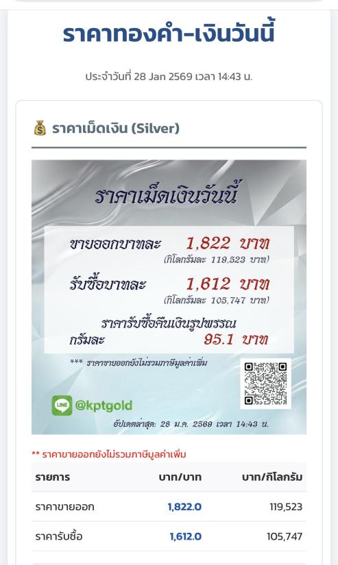 ราคาเงิน วันที่ 28/1/69 เวลาประกาศ 14:43 น.