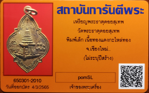 เหรียญพระธาตุดอยสุเทพ พิมพ์เล็ก เนื้อทองแดงกะไหล่ทอง ปี 2477 จ.เชียงใหม่ พร้อมบัตร G ครับ