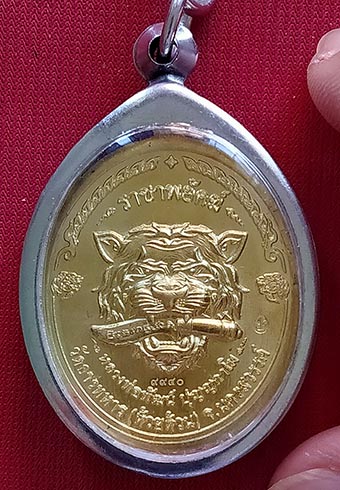เหรียญพ่อพัฒน์ วัดห้วยด้วน นครสวรรค์ "ราชาพยัคฆ์"เนื้อฝาบาตร ขอบน้ำเงิน ลงยาจีวร (รายการที่ 11)เลี่ยมแสตนเลส+เชีอกร่มพร้อมบูชา