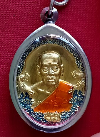 เหรียญพ่อพัฒน์ วัดห้วยด้วน นครสวรรค์ "ราชาพยัคฆ์"เนื้อฝาบาตร ขอบน้ำเงิน ลงยาจีวร (รายการที่ 11)