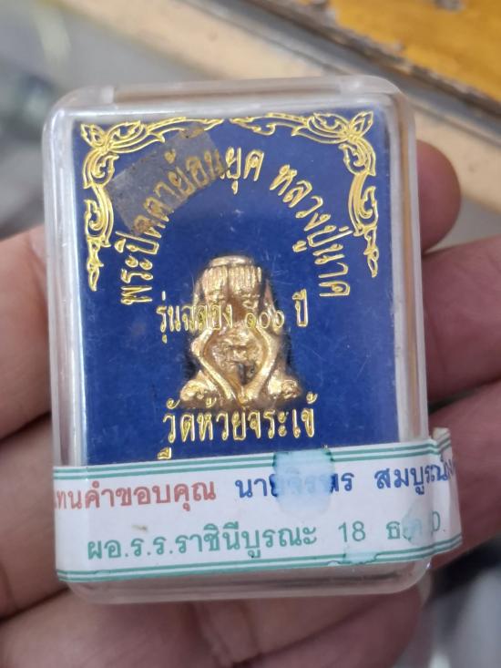 พระปิดตา วัดห้วยจรเข้ ย้อนยุค รุ่น 106 ปี เนื้อฝาบาตร ปี 2546 กล่องเดิม