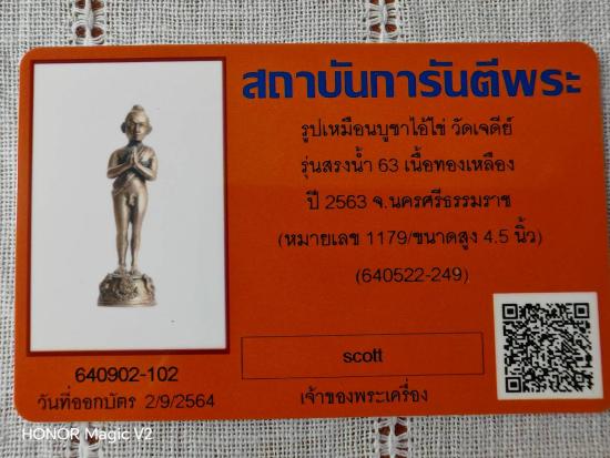 องค์บูชาไอ้ไข่ วัดเจดีย์ จังหวัดนครศรีธรรมราช รุ่นสรงน้ำ 63 เนื้อทองเหลือง ขนาดสูง 5 นิ้ว หมายลข 1179 มาพร้อมบัตรรับรอง