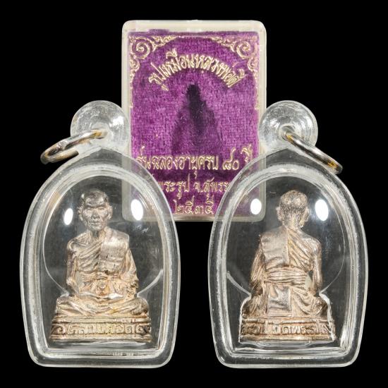 รูปหล่อเนื้อเงิน หลวงพ่อดี รุ่น "ฉลองอายุครบ ๘๐ ปี" วัดพระรูป สุพรรณบุรี ๒๕๓๕ เนื้อเงิน ผิวเดิม ตอกโค๊ต เลี่ยมพลาสติกกันน้ำ พร้อมกล่องเดิม