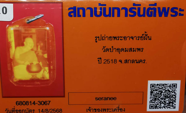 รูปถ่ายพระอาจารย์ฝั้น วัดป่าอุดมสมพร ปี2518 จ.สกลนคร + บัตรG-pra สภาพเดิมค่ะ