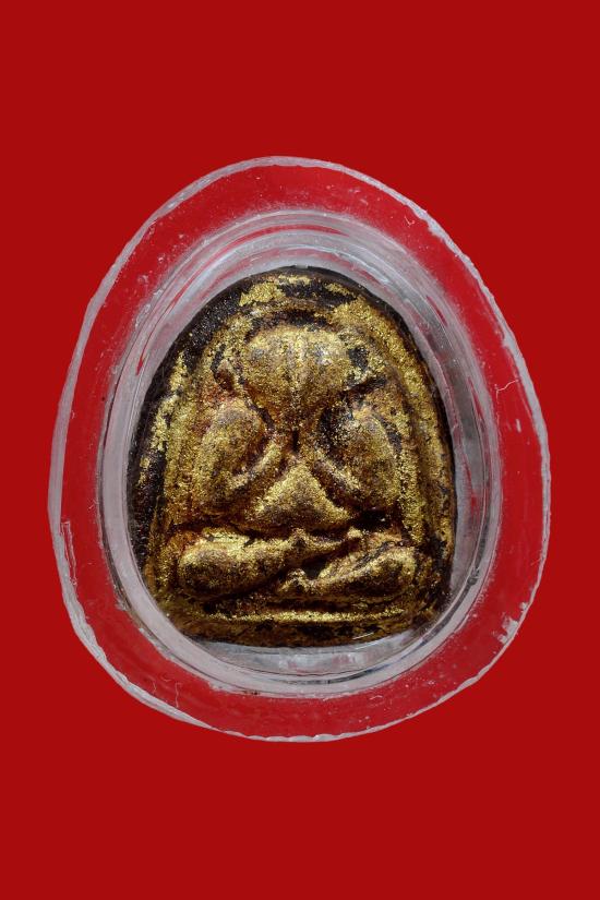 พระปิดตาหลวงปู่ทิม วัดละหารไร่ รุ่นอุดมความสุข เนื้อผงคลุกรักปิดทอง ปี 2517 มาพร้อมบัตร Gpra