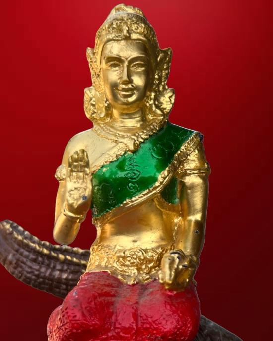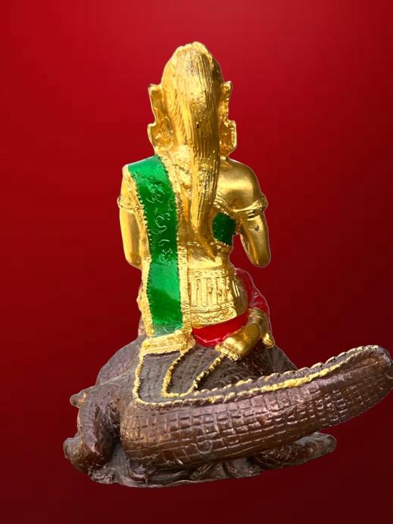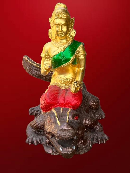 พระแม่คงคา ประทับจระเข้ ขนาดบูชา จระเข้ยาว 13 นิ้ว สูง 9 นิ้ว เนื้อโลหะ ลงสี