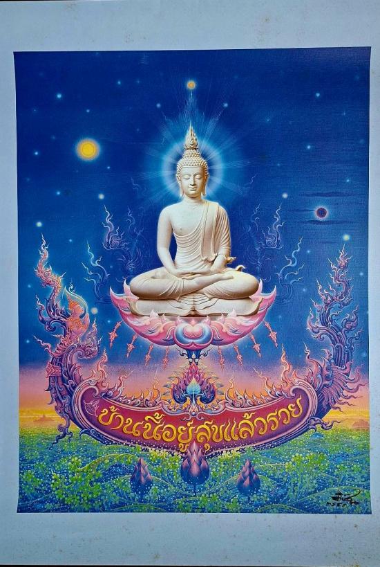 รายละเอียด กราบขออนุญาตท่านอาจารย์ เพื่อนำเสนอภาพพิมพ์กระดาษ พระพุทธเจ้าประทานพร "บ้านนี้อยู่สุขแล้วรวย " (version 2nd)
