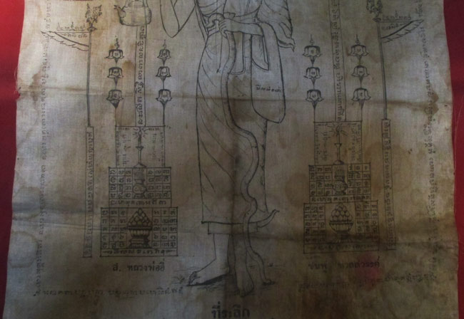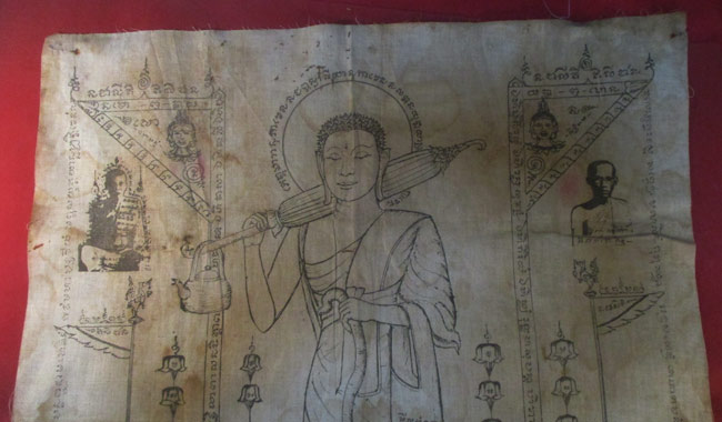 ผ้ายันต์ วัดสวรรค์นิมิต ลวดลายสวย เนื้อผ้าดูเก่า ครับ (พระบ้าน ครับ) |