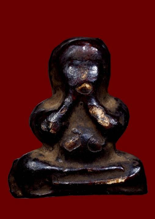 พระปิดตาเนื้อผงจุ่มรักเก่าไม่ทราบที่ |