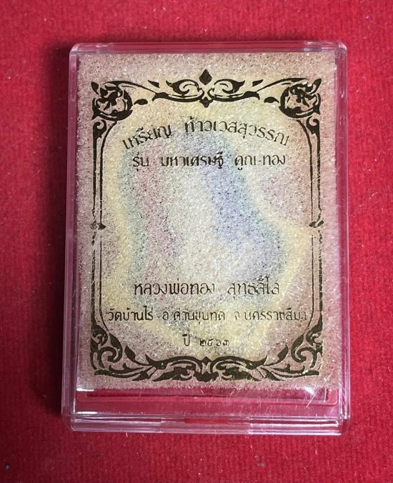 หลวงพ่อทอง วัดบ้านไร่ อำเภอด่านขุนทด จังหวัดนครราชสีมา รุ่น เหรียญท้าวเวสสุวรรณ มหาเศรษฐี คูณ-ทอง ปี 2563 แพคคคู่ 2 เหรียญ มีติดเกศาหลวงพ่อหนึ่งเหรียญ กล่องครบทั้งสองเหรียญ