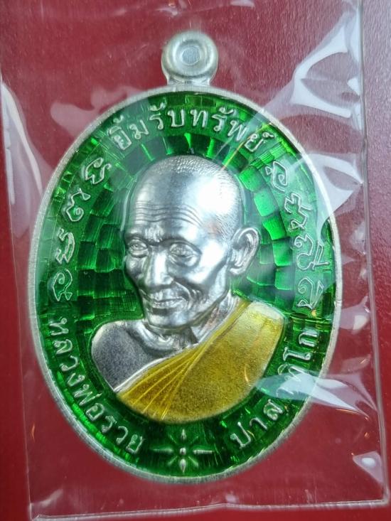 เหรียญรูปไข่ หลวงพ่อรวย วัดตะโก จ.อยุธยา เนื้อเงินลงยา