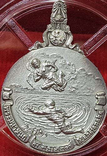 เหรียญพระมหาชนก เนื้อเงิน พิมพ์เล็ก พร้อมกล่องครบ สภาพสวยมาก สวยทั้งเหรียญ,สวยทั้งกล่อง รับประกันความแท้