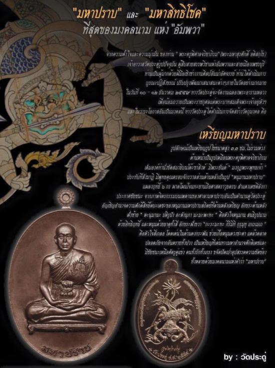 พระมหาสุรศักดิ์ วัดประดู่พระอารามหลวง จ.สมุทรสงคราม เหรียญมหาปราบ เนื้อทองแดงมันปู มีจารหน้าหลัง บล๊อคทองคำ No.17844