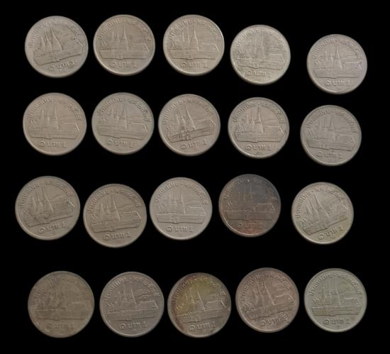 พร้อมกัน 20 เหรียญครับ เหรียญ เดิมๆครับ เหรียญ 1 บาท ปี2525 หลังวัดพระแก้ว หายากครับ
