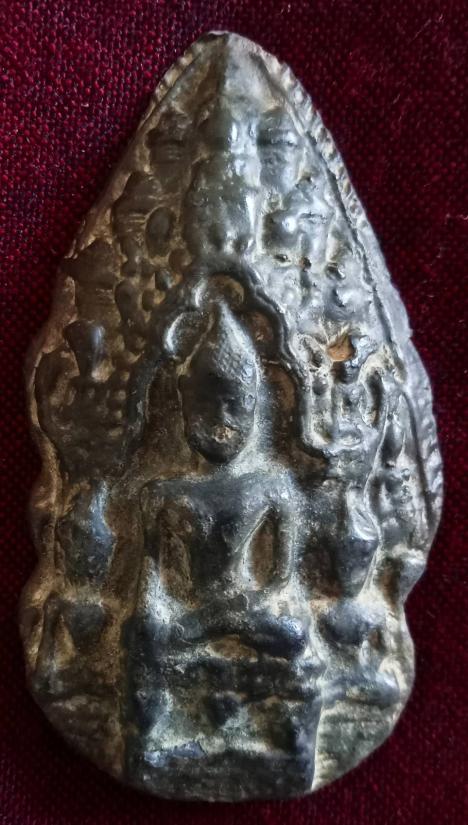 พระสาม เนื้อโลหะ ไม่แน่ใจว่าเป็นแร่พลวง หรือตะกั่ว แต่หนักมาก ศิลปแบบศรีวิชัย ไม่ทราบที่ หลังปั้มโค้ด เนื้อดำคร่ำเก่าอย่างเป็นธรรมชาติ สภาพสวยตามรูป ส่งฟรีทั่วไทย รับประกันตามกฎครับ