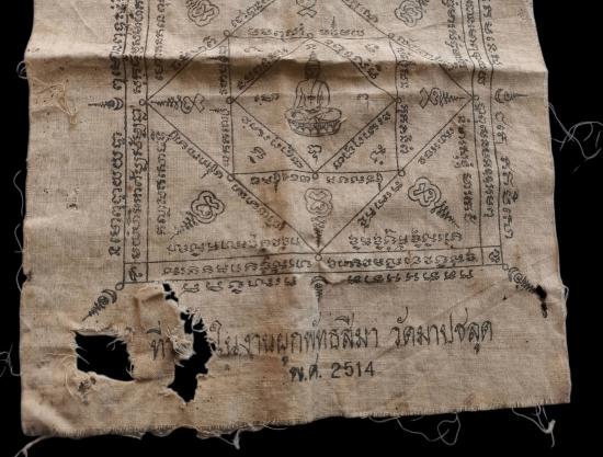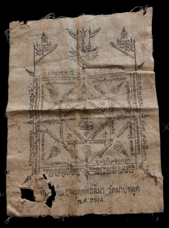 ผ้ายันต์ วัดมาบชลูด ระยอง ปี2514 ... ขนาด A4 สวยเดิมครับ ... หลวงปู่ทิม วัดละหารไร่ ปลุกเสก พร้อมเกจิระยองครับ ... สภาพใช้ มีขาดตามภาพ หนึ่งในผ้ายันต์หายากเมืองระยองที่หลวงปู่ทิมท่านเสกไว้ให้ครับ