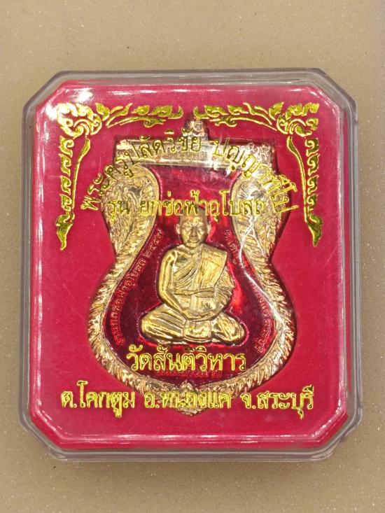เหรียญเสมารุ่น 2 รุ่นสุดท้าย พระครูปลัดวิชัย วัดสันติวิหาร เนื้อกะไหล่ทองลงยาแดง สวยเดิม กล่องเดิม เหรียญรุ่นนี้มีประสบการณ์เรื่องมหาอุต หลายต่อหลายครั้งครับ