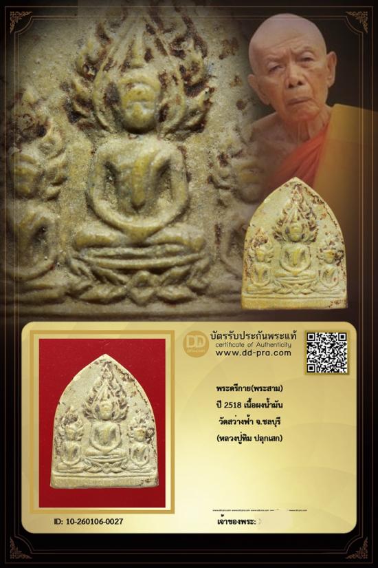 พระตรีกาย(พระสาม) หลวงปู่ทิม ปลุกเสก ปี 2518 เนื้อผงน้ำมัน วัดสว่างฟ้า จ.ชลบุรี พร้อมบัตรรับรอง