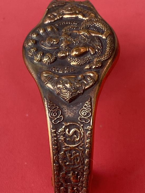เคาะเดียวแดง กำไล องค์พ่อจตุคาม-รามเทพ รุ่นมงคลจักรวาล เนื้อสำริด เลข 519 |