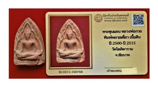 พระขุนแผน หลวงพ่อกวย พิมพ์พลายเดี่ยว สวย ยุคต้น เนื้อดิน ปี 2500-ปี 2515 วัดโฆสิตาราม + บัตรรับรอง