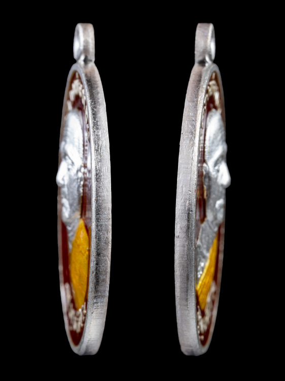 เนื้อเงินลงยา 2 สี ( เหลือง แดง ) ขนาด 2.7 ซ.ม. X 3.9 ซ.ม.