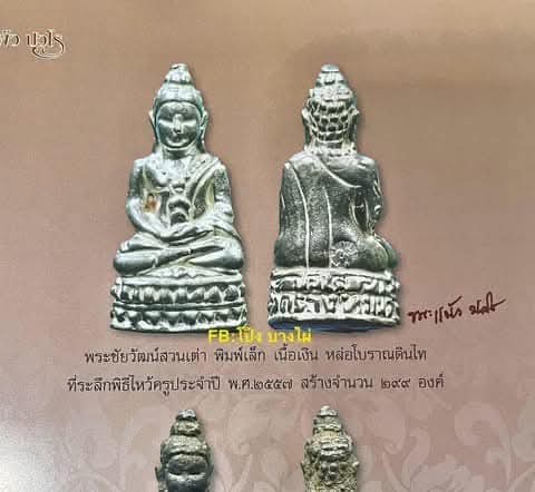 จิ๋วแต่แจ๋ว พระชัยวัฒน์สวนเต่า หลวงปู่แผ้ว วัดรางหมัน พิมพ์เล็ก(จิ๋ว) ทีระลึกพิธีไหว้ครูปี57 ✨เนื้อเงิน✨สร้างแค่299 องค์ หายาก ตอกโค๊ต ผ. ด้านหลัง |