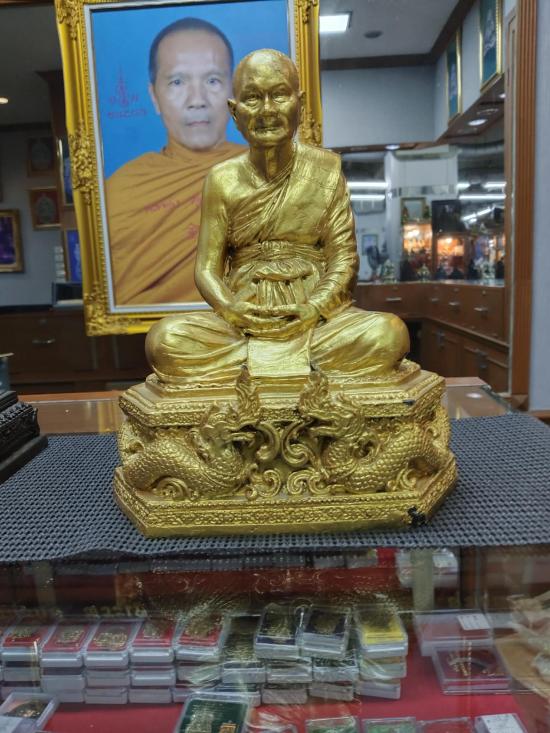 พระบูชา เจริญอายุวyฒนะ 7รอบ84ปีขนาดฐาน 7 นิ้วขนาดหน้าตัก 5 นิ้ว นั่่งงฐานพญานาค ทาสีทอง เนื้อโลหะ หลวงพ่อจรัญ วัดอัมพวัน เคาะแรก