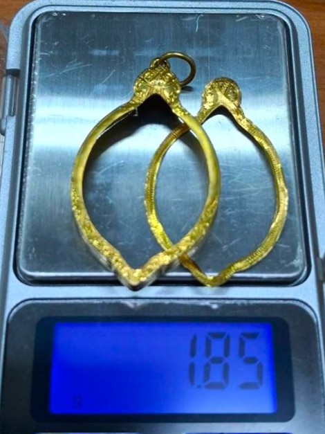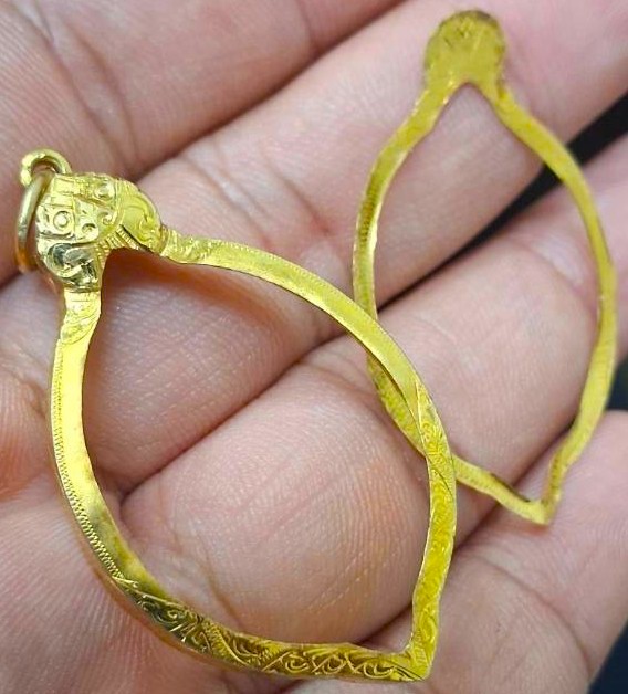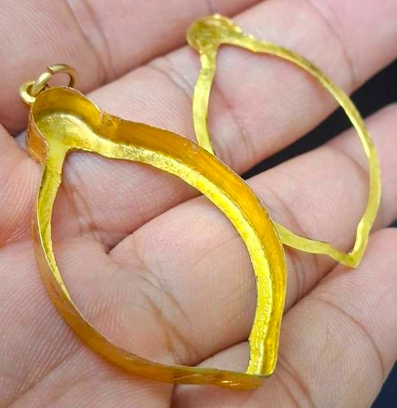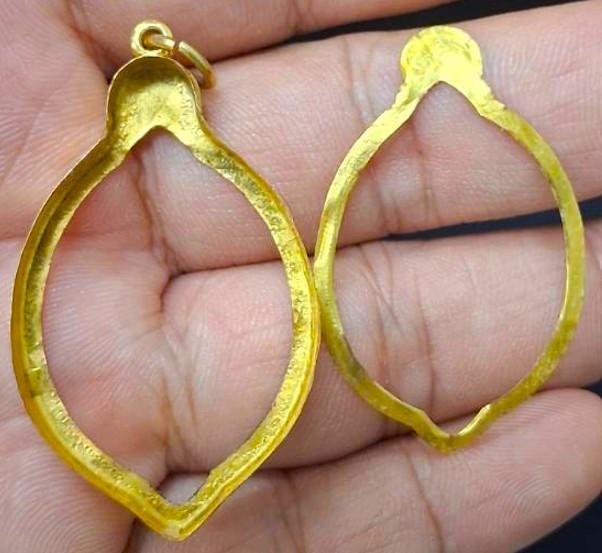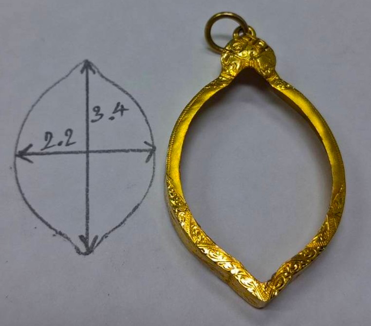 กรอบทองมือสอง ใส่เหรียญเจริญศรีหลวงพ่อสว่าง หรืออื่นๆที่ไกล้เคียง หน้าจอกว้าง 2.20 ซม., สูง 3.40 ซม. น้ำหนัก 1.85 กรัม เคาะเดียว
