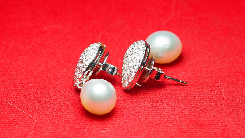 ***ต่างหูทองคำ เพชรแท้ มุกแท้ นน.9.2 กรัม***