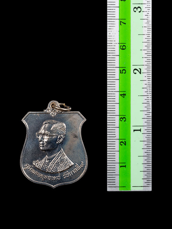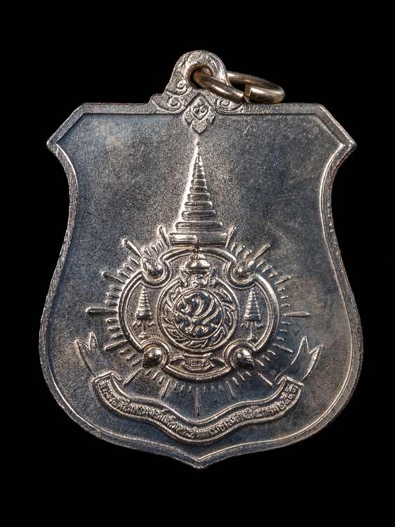 ด้านหลัง: ประดิษฐานตราสัญลักษณ์งานเฉลิมพระเกจิครบ 6 รอบ (ภ.ป.ร. ภายใต้พระมหาพิชัยมงกุฎ)