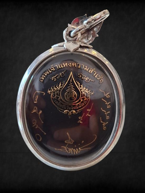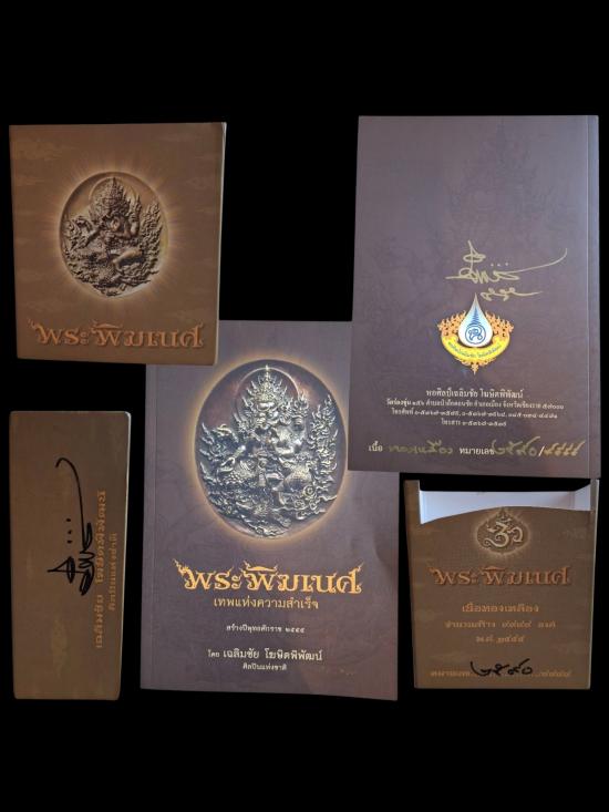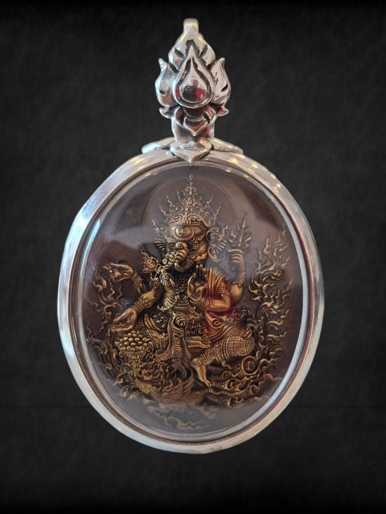 ชื่อพระเครื่อง พระพิฆเนศ น้ำตาลแสงทอง หมายเลข ๒๕๙๐ พร้อมกรอบเงินผ่าหวาย อุปกรณ์ครบ