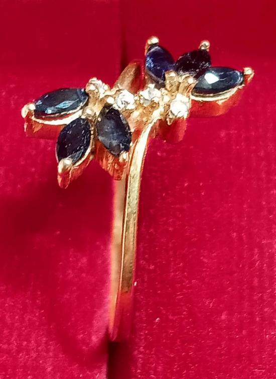 แหวนทองเหลือง ไพลิน ทรงดอกไม้สามกลีบไขว้ แถม แหวนงานจิวเวอร์รี่อีก 1 วง (รหัส 30076560.5)